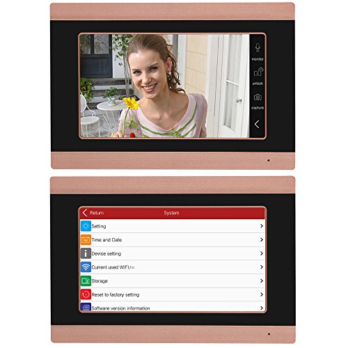 ndoor unit 1204*600 capacitive touch screen can take video recording. Doorbell kit has different doorbell ringtones, adjustable volume, brightness and contrast, monitor, walkie-talkie and electronic lock control