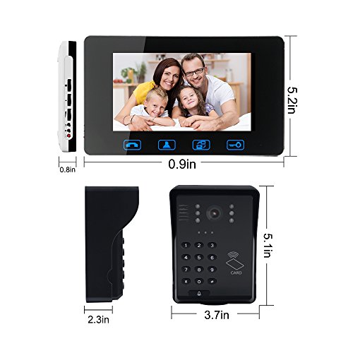 7” HD Color Screen – 7 Inch LCD touch screen, 25 different kinds of door bells chimes. Volume, brightness and contrast are adjustable.