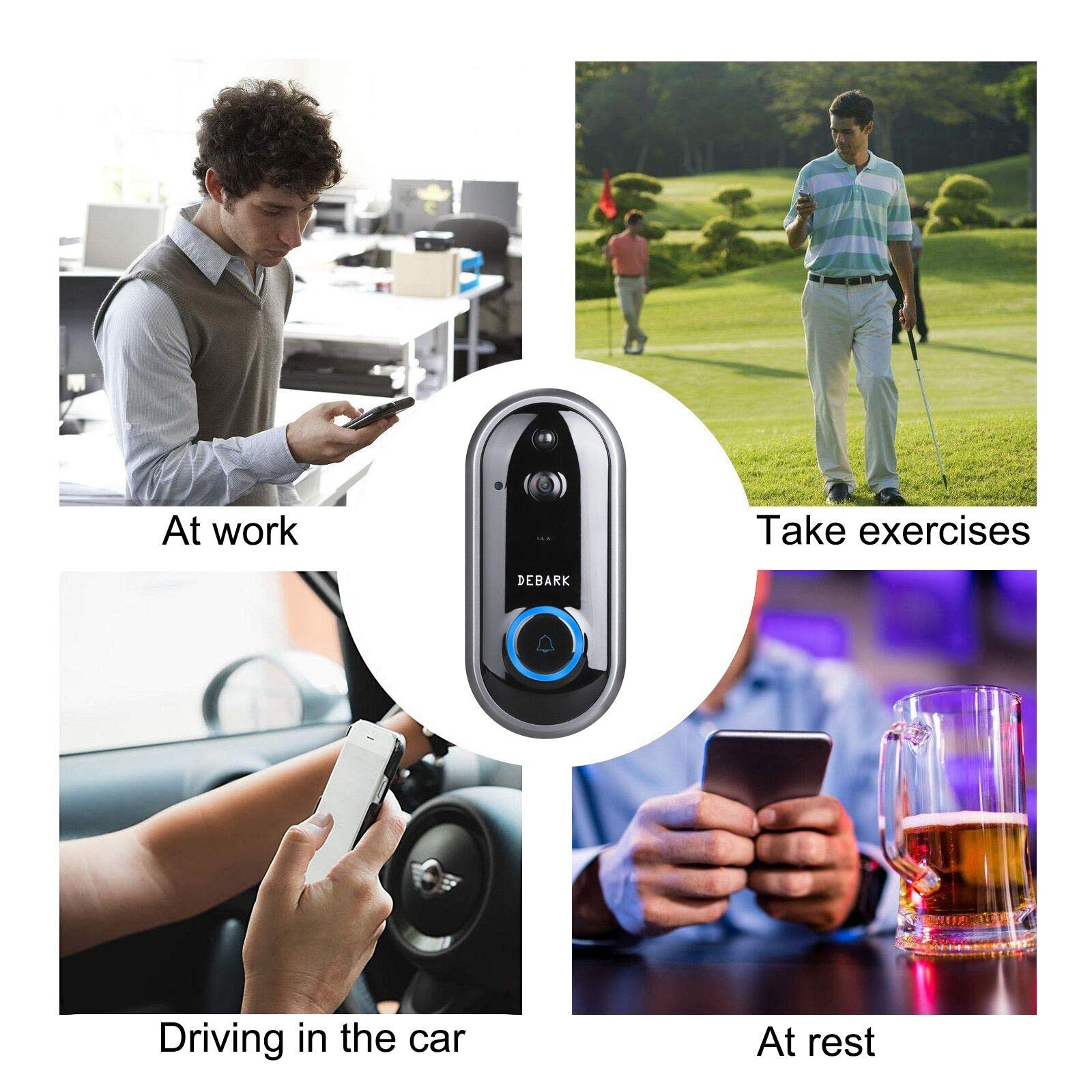 Easy to set up, Pair with your mobile by connecting Wi-Fi, compatible with iOS, Google and Android. Video doorbell comes with an innovative quick-release rechargeable battery pack, so you can charge your doorbell without moving the device. Lower power and ultra-long standby time generally, two batteries can work for 6-8 months. With DEBARK video doorbell, keep you always home.