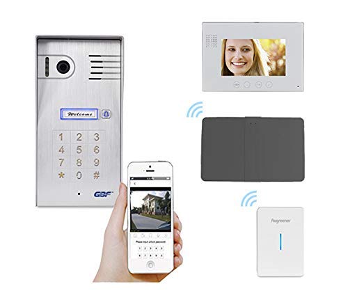 GBF smart four wire video door phone supports two-way voice communication and remote door release function. Unlock door with indoor monitor or iOS/android devices (iPhone, iPad and other smart phones). You can watch, hear and speak to the person at your door and unlock the door with indoor monitor or your smart phone, no matter where you are or what you are doing. The application is available for IOS and android mobile phone and tablet. With Wi-Fi/3g/4g connection, intercom and door release all remotely controlled by your smart phone or tablet no matter what your location is, even you are away from home. Meanwhile, application and server service are all free to download for end users. Main features:1. Calling, intercom, unlocking, monitoring.2. In-call ringtone alert.3. Duplex way communication.4. Remote unlocking. Compatible with all different electrical locks, electrical strikes and gate openers etc.5. Premium HD video.6. Snapshot & video record.7. Support android/iOS devices.8. Wi-Fi enabled or Ethernet rj45 connector.9. Multiple users.10. Night vision.11. Free cloud service, no monthly fee.12. Personal computer access IP camera program.13. Code access.Specification:1. Built-in HD camera.2. Built-in speaker & microphone.3. Aluminum alloy panel, brush finished silver, waterproof, anti-vandal and durable.4. Code access. Package includes:1. GBF outdoor station 1pcs2. GBF indoor monitor 1 pcs3. GBF skybox 1pcs4. Power adapter 1pcs5. User manual6. Mounting screws.
